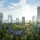 The project, which includes towers ranging from 17–59 stories, will maximze the use of the narrow srip of land, set to be a car-free development. The conceptual drawings featuring curvilinear balconies overflowing with greenery and reflecting the surrounding environment were done in close consultation with the Squamish Nation and include Indigenous art and design elements from façades to structural core surfaces to suite entry doors and benches.