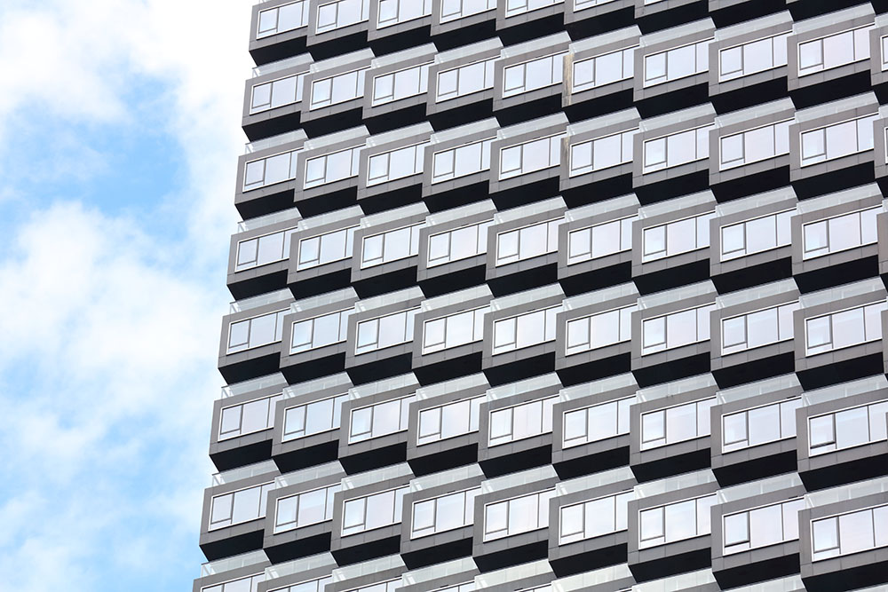 It is designed to seamlessly accommodate the transformation from working to living as the tower takes off from the ground to reach the sky. The lower floors of the building are clean and rectangular resulting in efficient open office layouts. As the building rises, the floor plates slowly reduce in size and pixilate, providing opportunities for offices with small balconies and terraces. The shape of the tower facilitates the smaller residential floor plates with balconies at the top of the building.